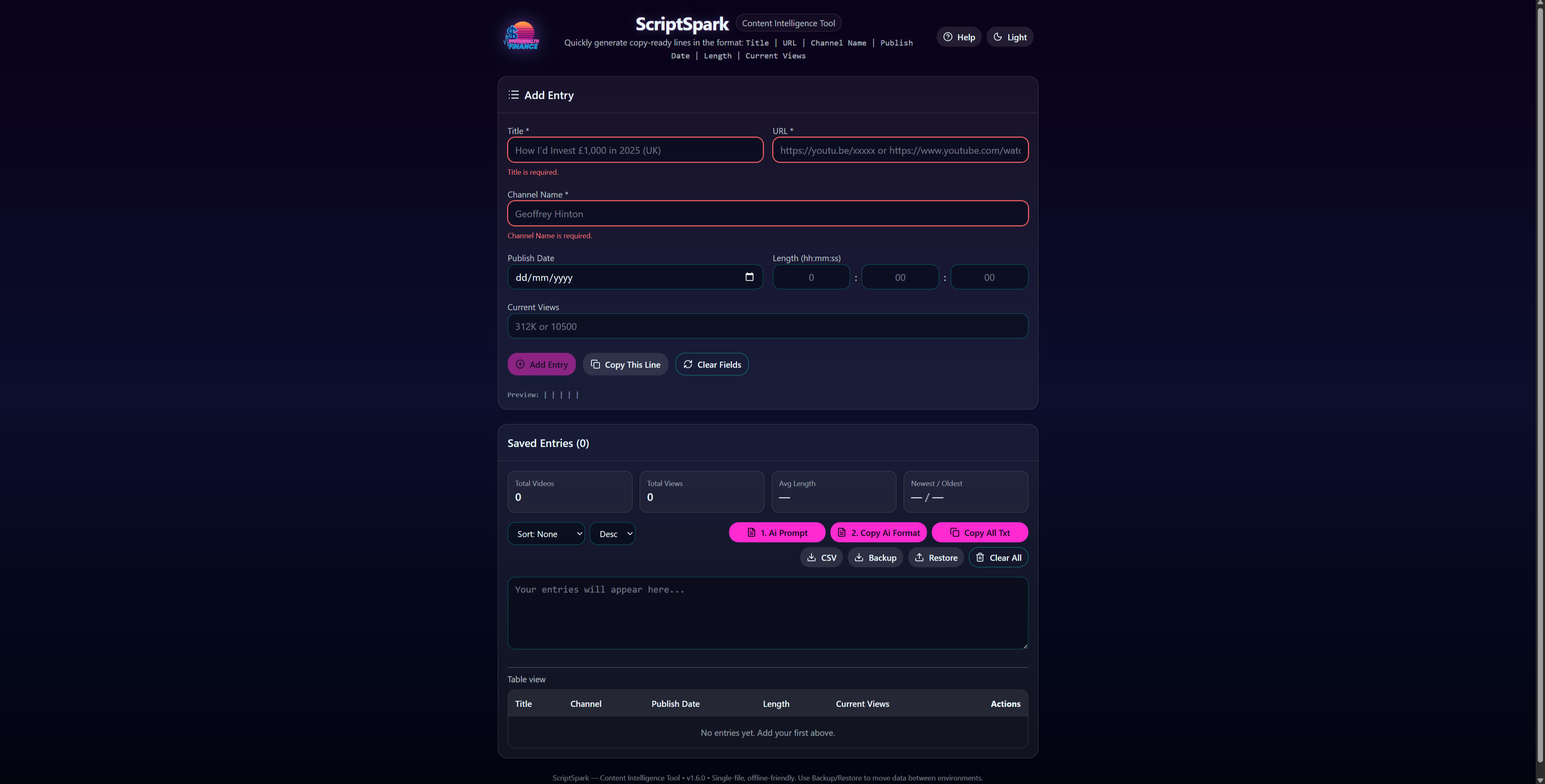 Use the Script Spark Content Intelligence Tool and take the guess work out of creating quality content. Unlock hidden data in viral videos and crush creative block.